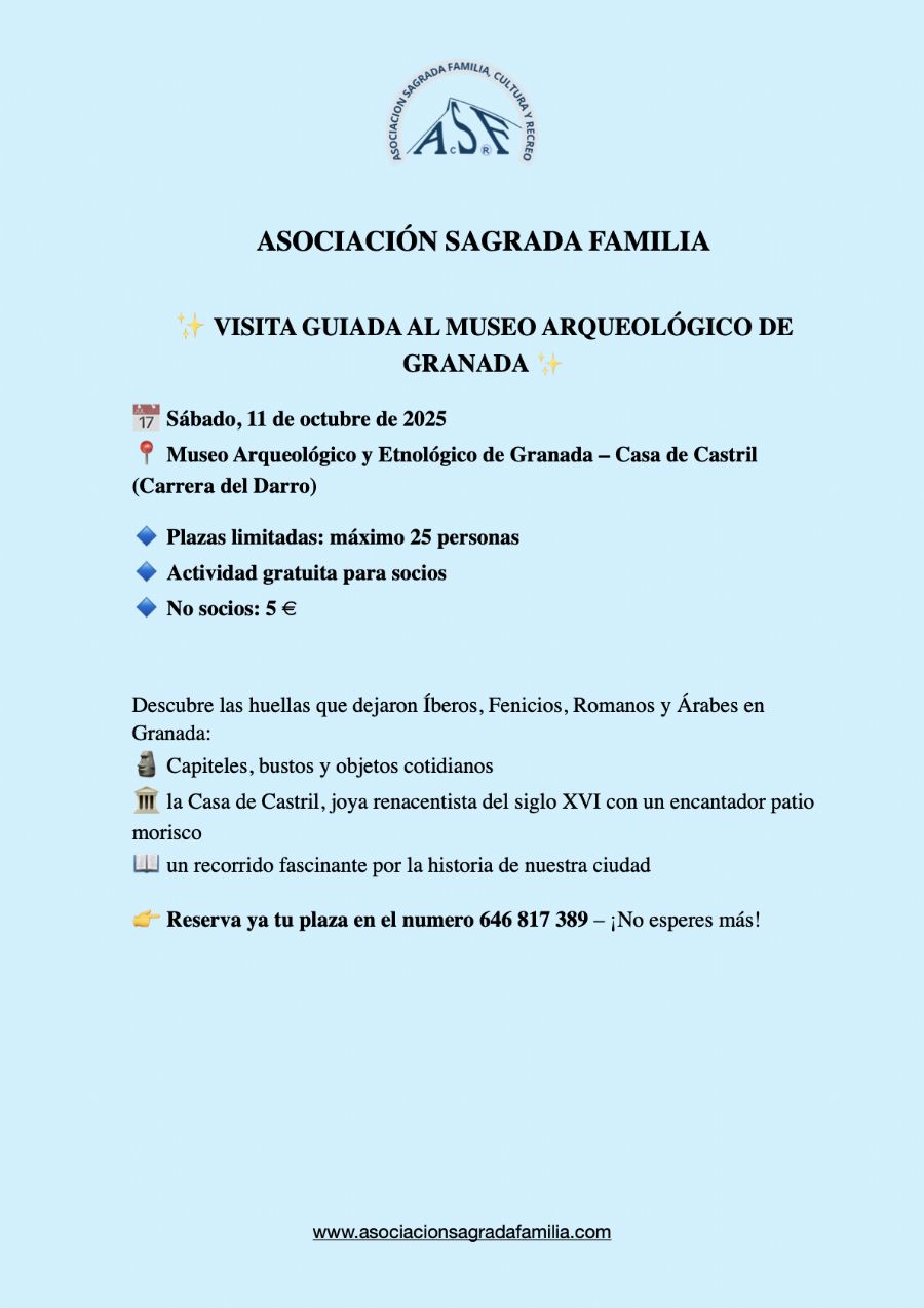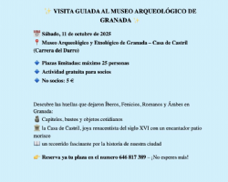 La A.S.F. ha programado una visita guiada al MUSEO ARQUEOLÓGICO el próximo sábado 11 de Octubre de 2025. El número de plazas son limitadas con un máximo de 25