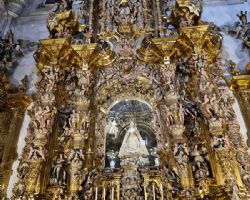 Al acceder al interior, la primera impresión es de equilibrio y sobriedad. Sin embargo, conforme se avanza, el barroco comienza a desplegar toda su fuerza expresiva. Especial admiración despertó entre los asistentes el impresionante retablo repleto de angelitos tallados, cada uno diferente, del que algunos estudiosos calculan que alberga más de quinientas figuras. Una verdadera obra maestra que anticipa la maravilla que aguardaba a continuación.