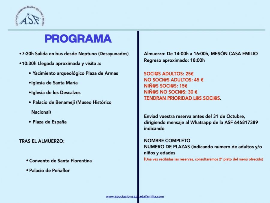 Enviad vuestra reserva antes del 31 de Octubre, dirigiendo mensaje al Whatsapp de la ASF 646817389 indicando