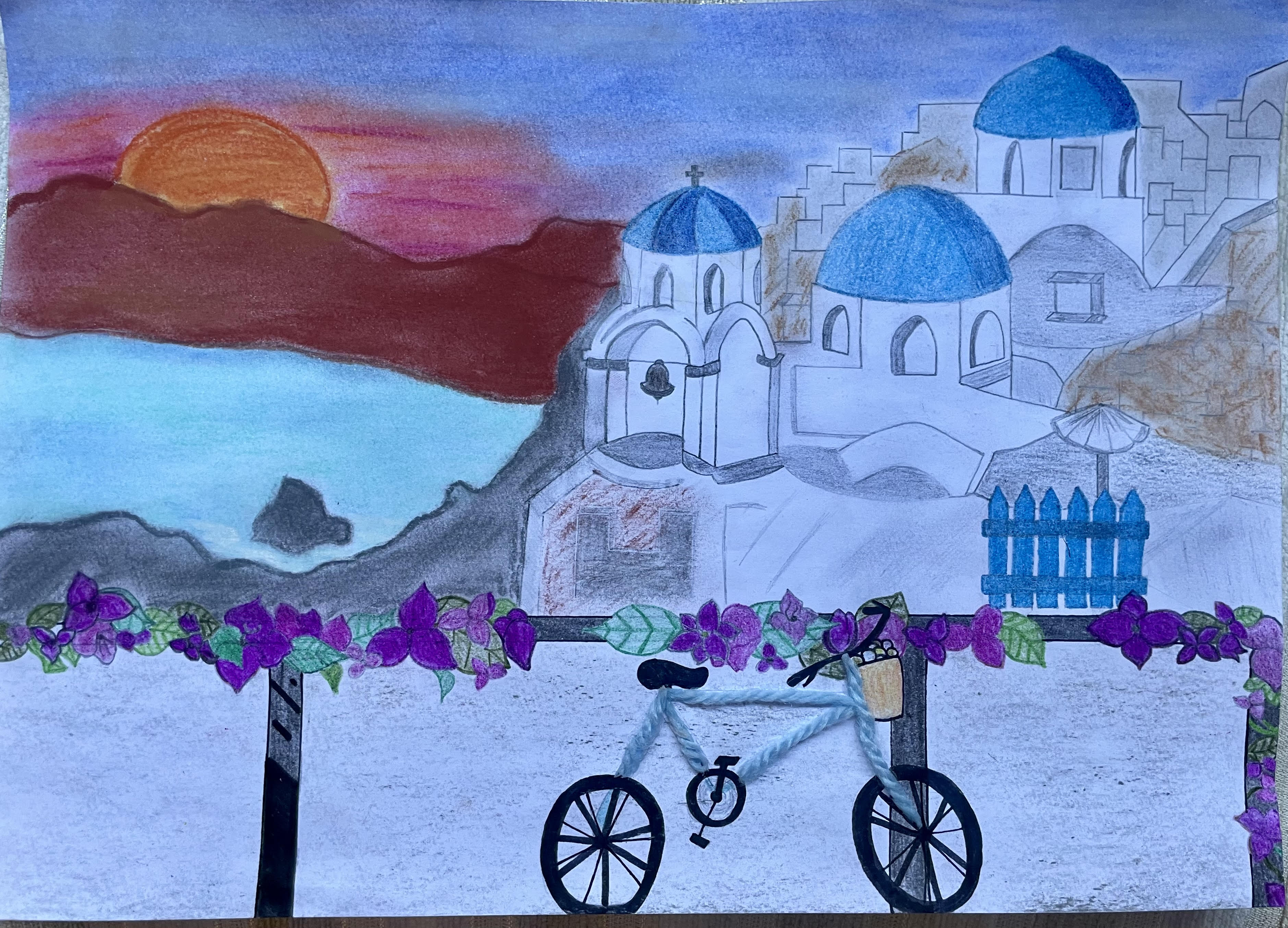DD 1º DIBUJO CATEGORIA D y tercer Premio ACRECA 'Atardecer en Santorini' Elena Rios Munoz (hija de Miguel Angel Rios Fernandez)