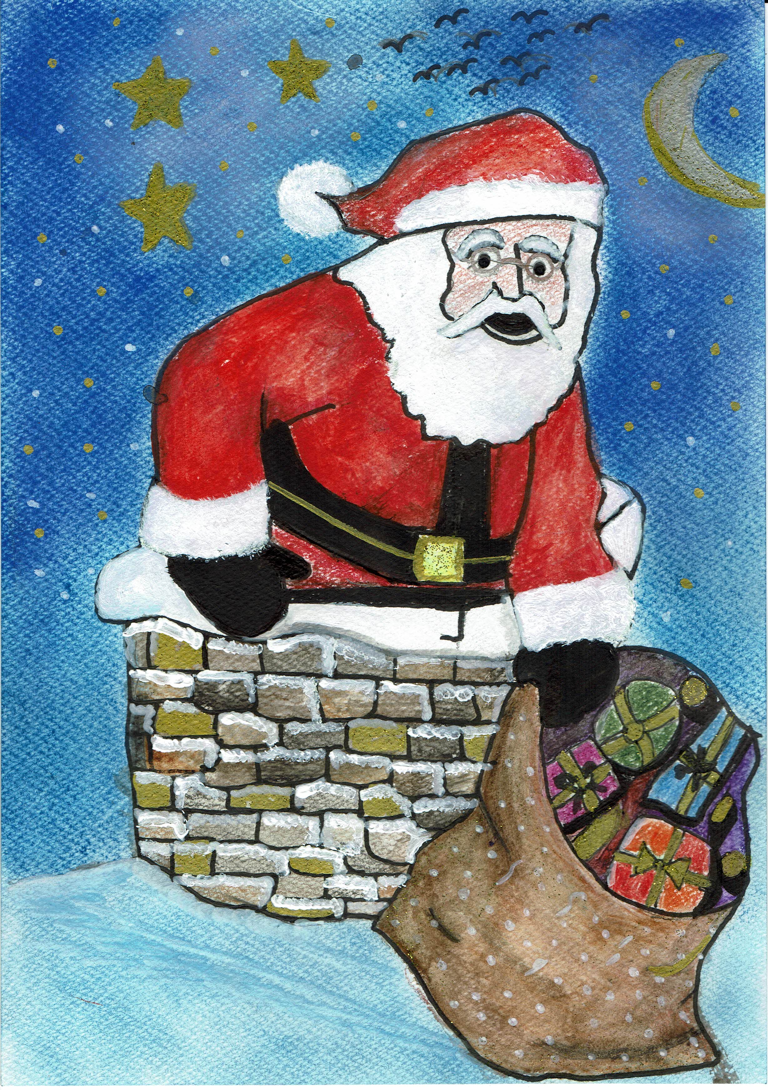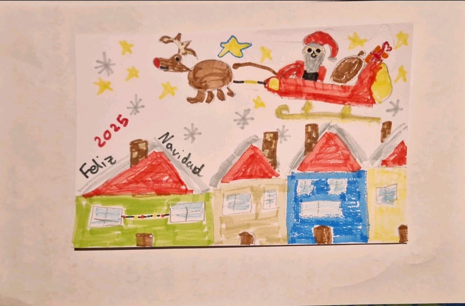 TC - 3º Premio TARJETA Y POSTAL DE NAVIDAD CATEGORÍA C 'Volando sobre las casas' Lucas Rusu Cara (nieto de Juan Manuel Cara García)