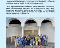 El pasado sábado 11 de octubre, un grupo de 27 socios de nuestra Asociación Sagrada Familia disfrutamos de una enriquecedora jornada cultural en el Museo Arqueológico y Etnológico de Granada, ubicado en la histórica Casa de Castril, en plena Carrera del Darro.