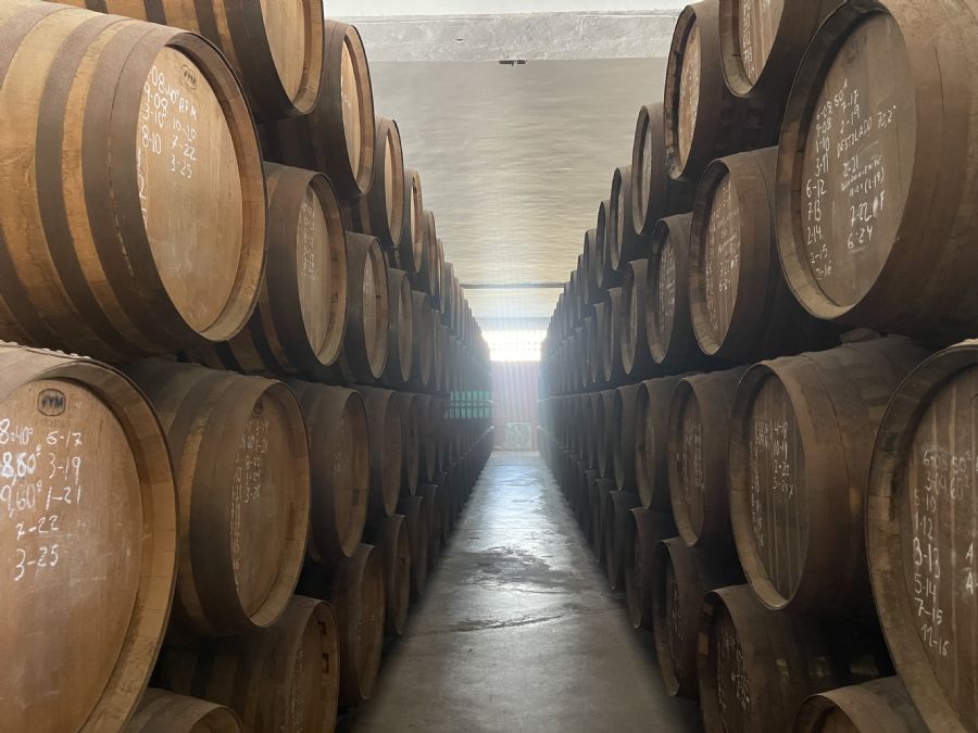 Mientras caminábamos entre los toneles, Laura nos explicaba cómo la magia ocurre despacio, con barricas vírgenes, aguardientes de caña, agua pura de Sierra Nevada y una paciencia que solo entiende quien ama lo que hace. Nos invitó a oler la melaza, a descubrir el tapón de los barriles, y nos habló de sabores, de tiempo y de tradición.