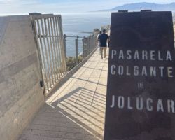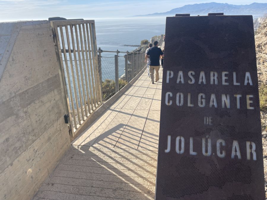 La Pasarela Colgante de Jolúcar. Una impresionante ventana al Mar de Alborán, suspendida a 35 metros sobre el nivel del mar. Al pisar los tablones de madera de iroko y mirar hacia abajo, el vértigo se mezclaba con la emoción.