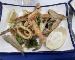 Con el corazón lleno de historia, nos esperaba la comida en el restaurante Katena, junto al mar. Un lugar acogedor, de esos donde el tiempo se diluye entre platos de “pescaito frito”, buena compañía y conversaciones que fluyen con la brisa. El sol de octubre nos regaló una temperatura veraniega que hizo aún más agradable aquel rato de descanso y risas compartidas.